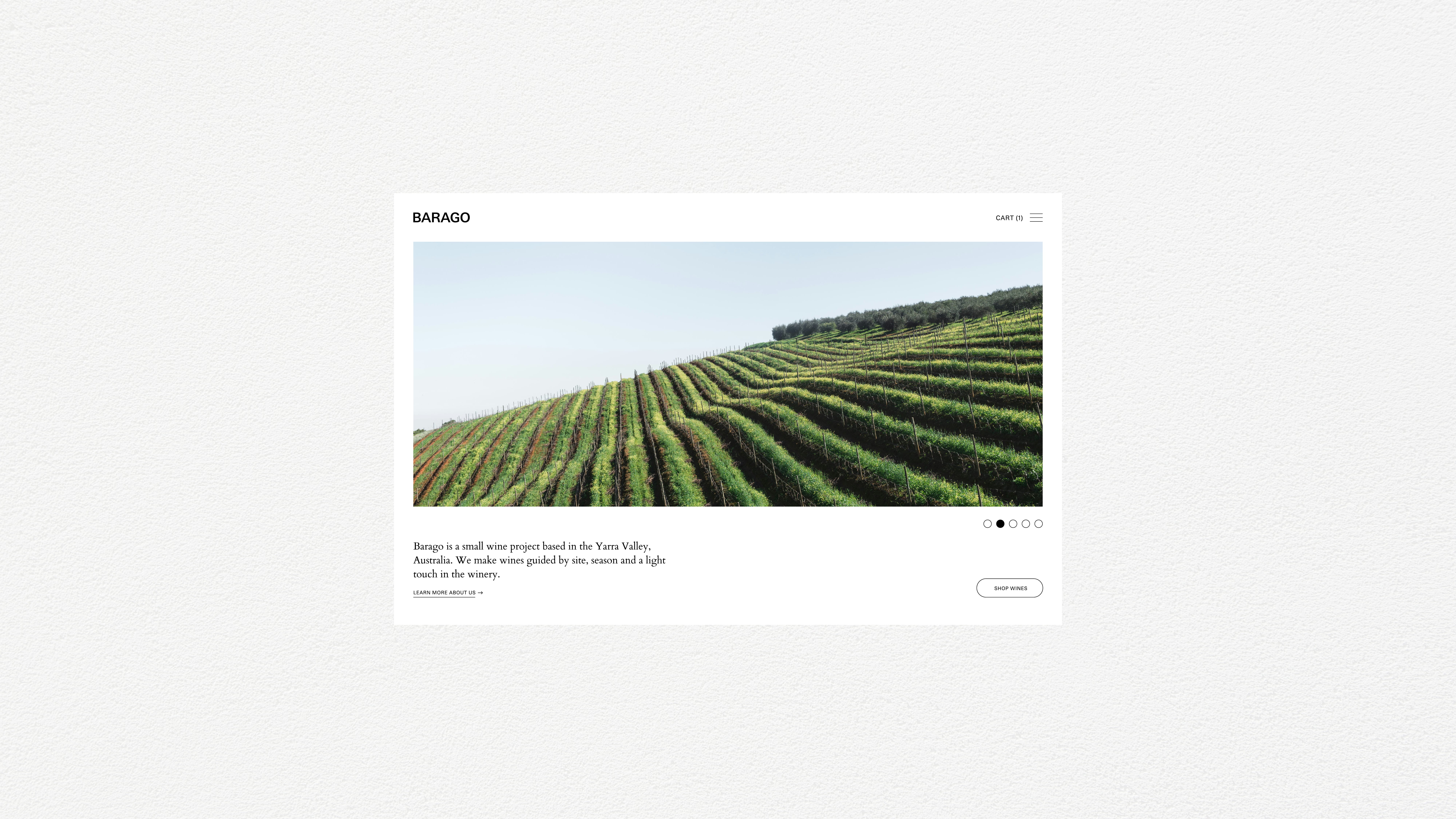 Barago is a conceptual winery based in the Yarra Valley, Australia. Inspired by dense, untamed landscapes, the name references difficult terrain – places shaped by resistance rather than refinement. Barago wines are made with minimal intervention, allowing site and season to shape the final result. The label features a hand-made mark, using charcoal and paper, drawing on the landscape and tactile nature of winemaking.